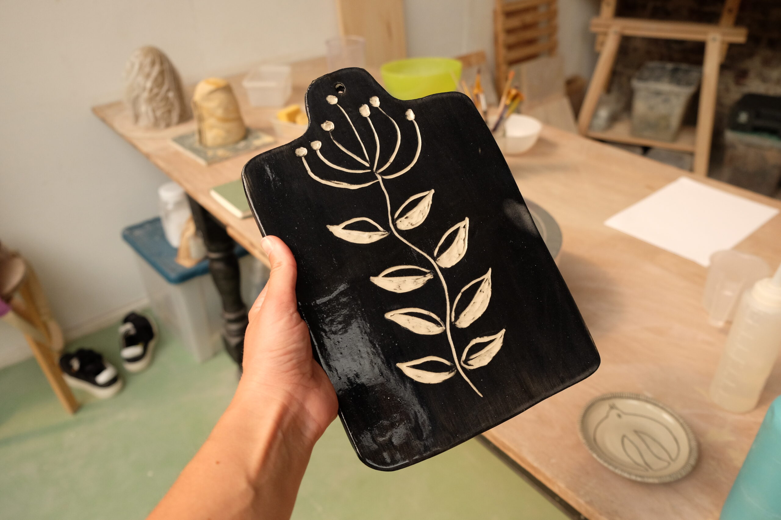 Je vous accompagne en groupe de 4 personnes maximum pendant 2h pour créer un mug, une tasse à café, un bol, un photophore ou encore une assiette décorée au sgraffito. Vous avez une envie en particulier ? N’hésitez pas à la présenter en début d’atelier pour voir s’il est possible de la réaliser ensemble !